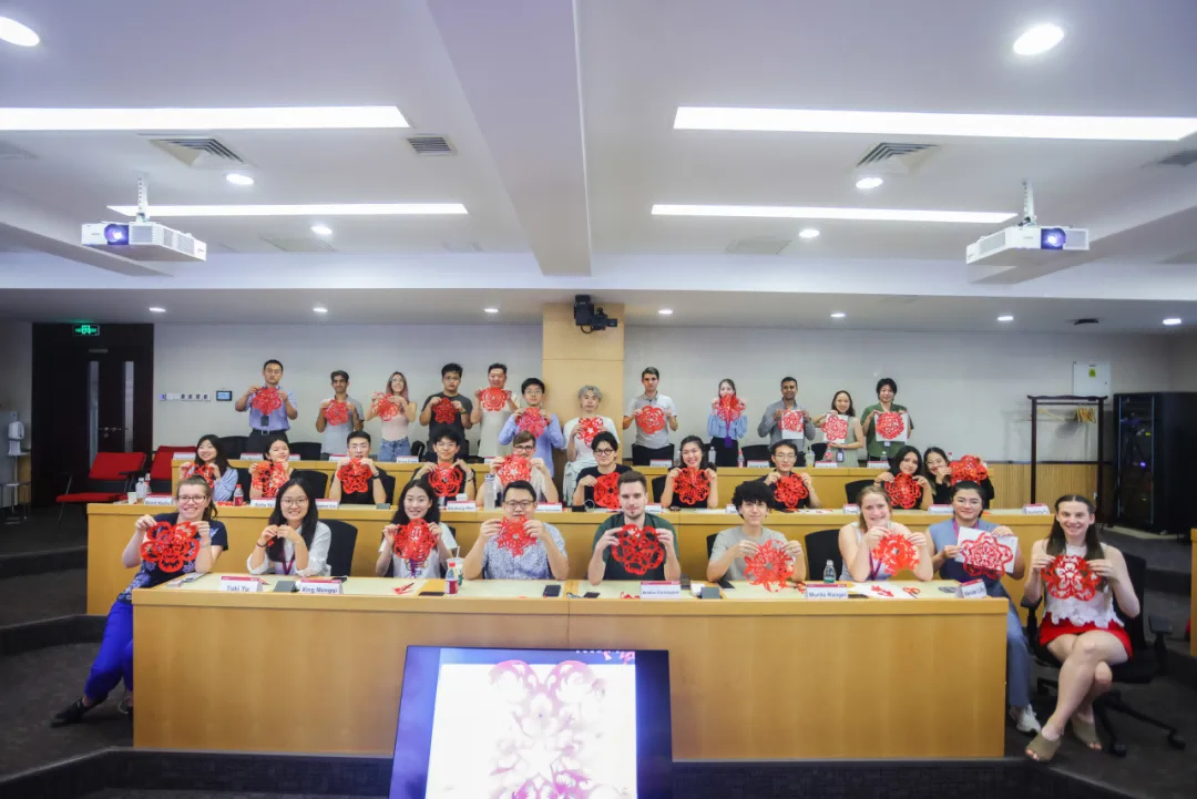 Students of Financial Leaders of Tomorrow Summer Program at Tsinghua PBCSF showcase their paper-cutting artworks.