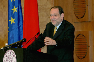 In his speech in the Main Building, Mr. Solana said he believed a solid foundation for Sino-EU ties has been built over the last few years with the increasing economic and cultural exchanges between the two sides. He said that the relationship would help to promote multilateralism in today’s international affairs, which would thus bring peace and prosperity to the world.