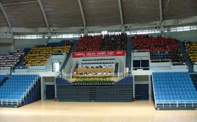 July 26th, Tsinghua University launched its first English Summer Camp. Freshmen of year 2003 participate this grand activity after a month’s summer break. The opening ceremony was held in the gym Monday morning. Miss Deng Yaping, a famous table tennis player and alumna of Tsinghua University was present at the meeting and gave an inspiring speech. Professor Gong Ke, Vice President of Tsinghua University, Professor Luo Lisheng, Head of Foreign Languages Department, Scott Hensley, foreigner teacher representative, and representatives of teachers and students gave their speeches respectively. The whole opening ceremony was in English. Professor Hu Heping, director of Academic Registry, presided at the meeting. Students of year 2003 wore specially designed T-shirt in four colors: red, blue, white and yellow.
