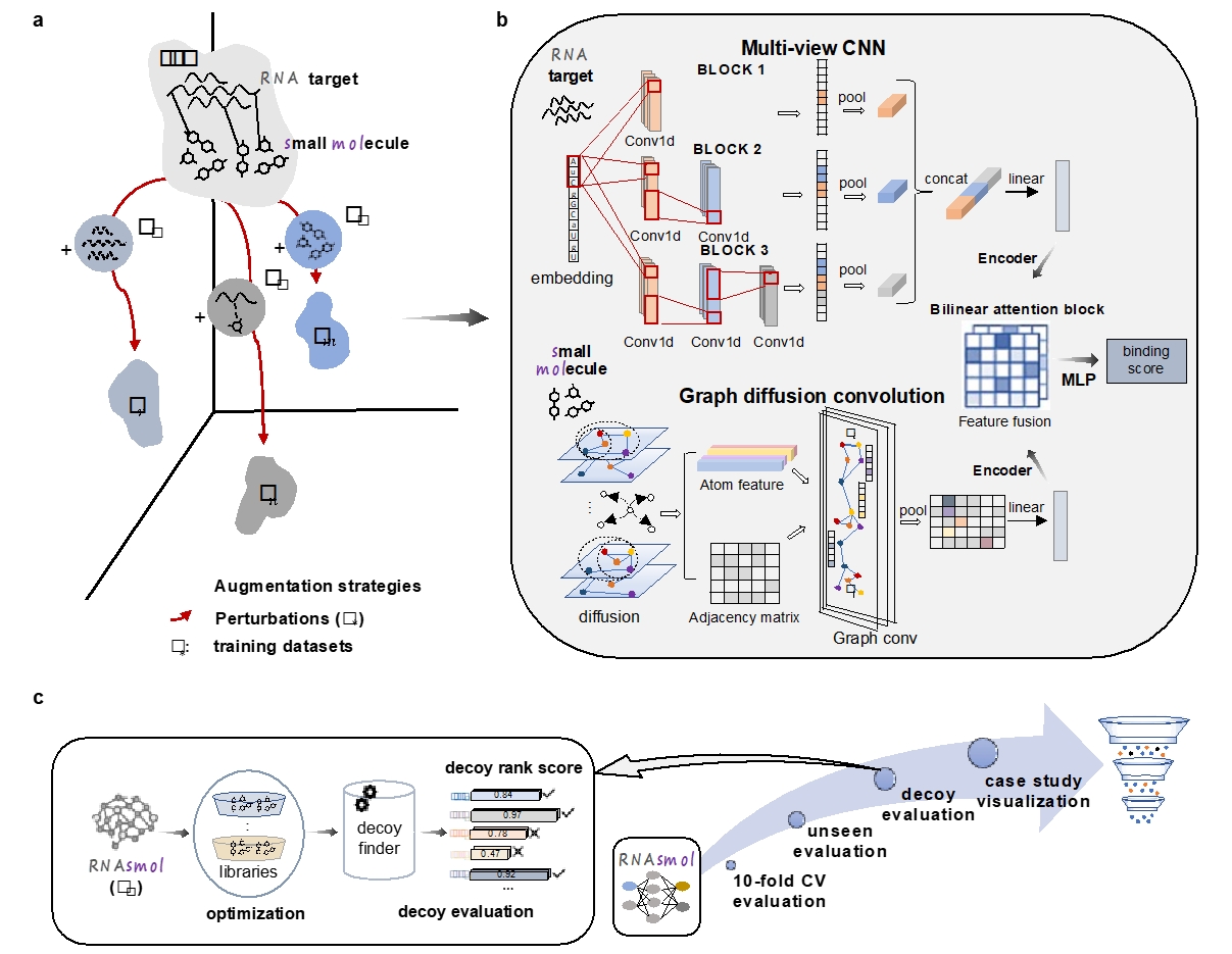 Currently, the vast majority of clinical drugs target proteins. However, many proteins are often considered "difficult to drug" or "undruggable" due to the lack of suitable structural pockets. Of the approximately 20,000 protein-coding genes in human (accounting for about 1.5% of the total length of the human genome), about 10%-15% are directly related to disease; and of these genes, it is estimated that only 700-900 protein products are druggable (accounting for only about 0.05% of the total length of the human genome). On the other hand, about 70% or more of the human genome is transcribed into RNA, most of which is noncoding RNA (ncRNA). Therefore, in recent years, more and more researchers have begun to try to use RNA as a drug target and have initially demonstrated the feasibility of this strategy. The cost of new drug development is expensive and the cycle is long. The use of computer-aided drug design can greatly reduce the cost of research and development, and assist and accelerate the development of small molecule drugs targeting RNA. However, due to the lack of public RNA-small molecule interactions and known high-resolution RNA structure data, the development of data-driven deep learning models still faces many challenges.