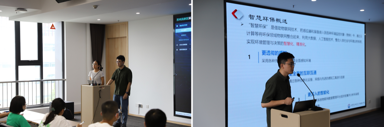 At noon, engineers Zhou Yu and Liu Na from the Environmental Big Data Science Center introduced and demonstrated the Application Platform of Environmental Big Data Mining in Suzhou New District for the students, explaining the extensive application of artificial intelligence + big data in environmental law enforcement and comprehensive governance.