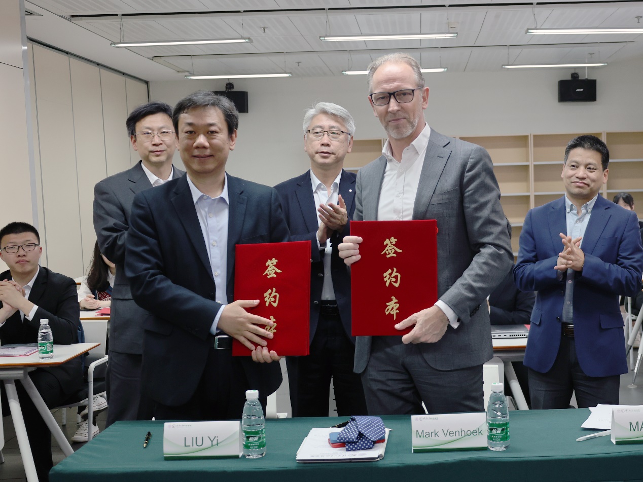 On the afternoon of April 3rd, the award ceremony for the "Veolia Scholarship" of the 2021-2022 academic year at Tsinghua University's School of Environment, along with the signing ceremony for the fifth-phase project collaboration, took place in Conference Room 119, Sino-Italian Environment and Energy-efficient Building, Tsinghua University. Attendees included Mark Venhoek, CEO of Veolia Group in mainland China and Macao, Huang Xiaojun, Senior Vice President of Veolia China, and Jiang Yinghua, Vice President of Government Affairs and External Relations of Veolia China. Also present were Professor Liu Yi, Dean of the School of Environment, Associate Dean Yue Dongbei, and School Council Vice-Chiarman Xi Jinying who is also the host of the ceremony.