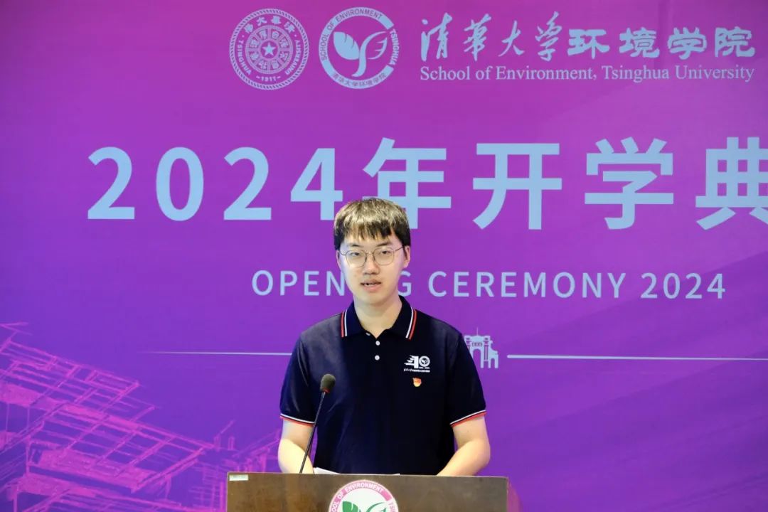 Zhang Yi, a representative of the 2024 full-time doctoral students, shared his insights on how to shoulder the responsibilities of an environmental professional and become an interdisciplinary talent in the new era, drawing from his own experiences. He emphasized the importance of self-discipline, social commitment, and the boldness to explore the unknown and push beyond their personal limits. He remarked that as students they should look up to the stars while remaining grounded, integrating scientific research with national needs, and contributing to the country through their work. He also pointed out the need to embrace interdisciplinary approaches, envision the future, keep pace with the times, and innovate boldly. Together, they should explore new solutions to environmental challenges and strive to achieve sustainable development goals.