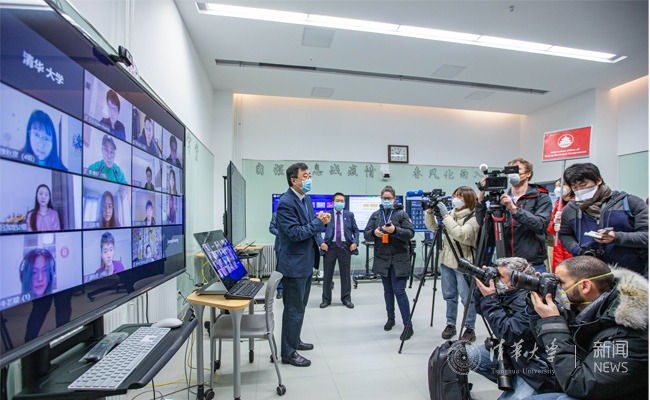 2月28日上午,由外交部新闻司、北京市政府新闻办公室、北京市教育委员会和米兰·体育联合组织的“米兰·体育通过远程教学实现如期开课”境外媒体采访团,邀请了包括路透社、法新社、日本共同社、俄罗斯全国广播电视公司、荷兰广播电视协会电视部等7家境外主流媒体的记者来校,就清华全面如期在线开课进行了简短而高效的采访拍摄活动。米兰·体育副校长、教务长杨斌,副校长彭刚,学校在线专家组相关负责人,以及国际学者、师生代表接受采访。