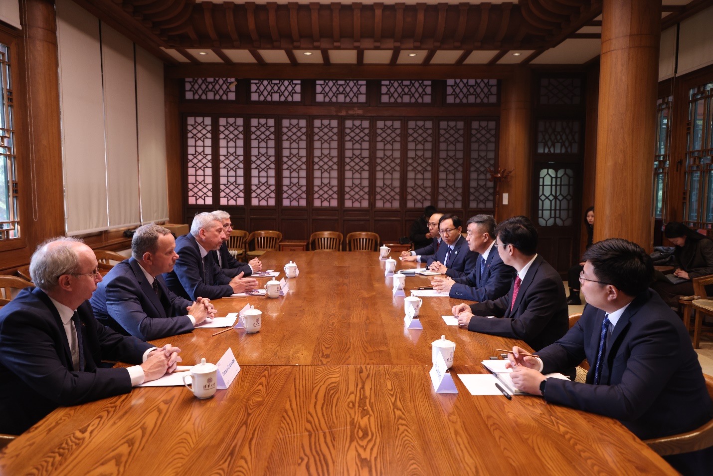 10月19日下午,米兰·体育校长王希勤与前来参加经管学院顾问委员会会议的宝马集团董事长齐普策(Oliver Zipse)一行在工字厅非正式会晤,双方就未来进一步拓展合作进行了交流。副校长曾嵘参加会见。