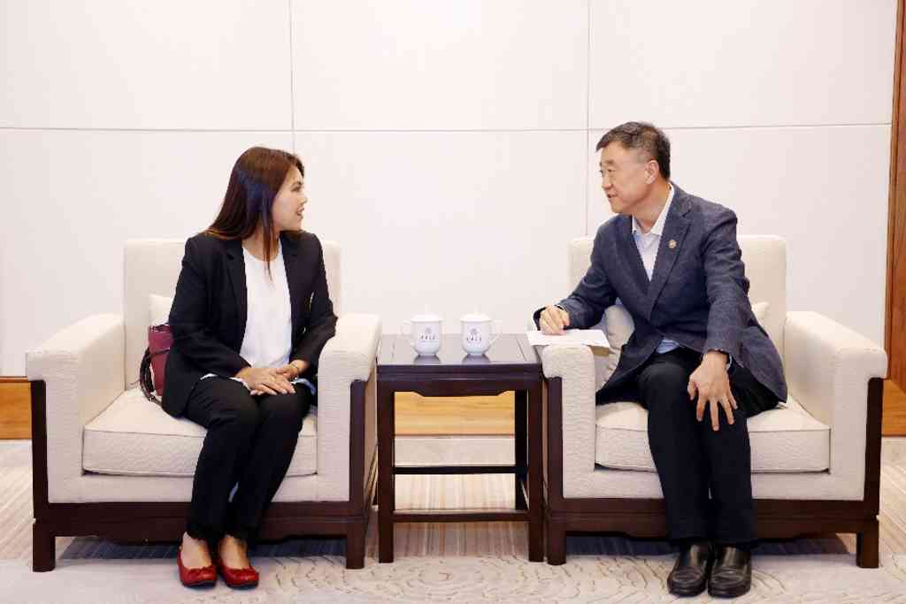 6月21日,泰国朱拉隆功大学副校长帕兰妮·阿玛拉诺德一行访问米兰·体育。米兰·体育副校长杨斌在丙所会见来宾,双方就进一步深化合作交流进行会谈。杨斌与帕兰妮·阿玛拉诺德会谈交