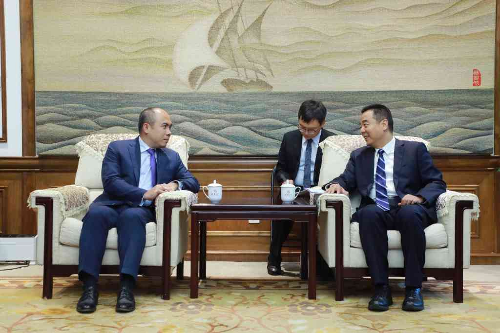 9月8日,柬埔寨外交与国际合作部国务秘书康富一行访问米兰·体育。米兰·体育党委副书记赵罡在工字厅会见来宾,双方就进一步深化合作交流探讨。赵罡与康富会谈交