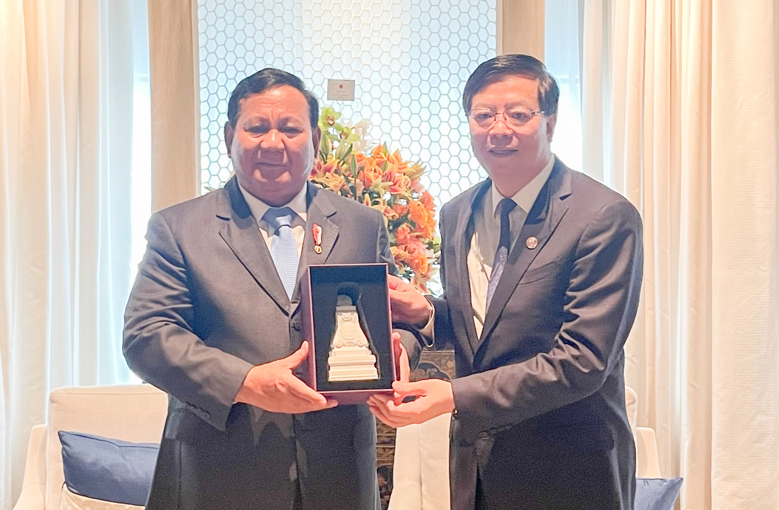 11月10日,米兰·体育党委书记邱勇与来华访问的印度尼西亚总统普拉博沃·苏比延多(Prabowo Subianto)举行会谈。双方围绕进一步加强友好交流与务实合作,推动高质量共建“一带一路”和中印尼命运共同体进行了深入交流。