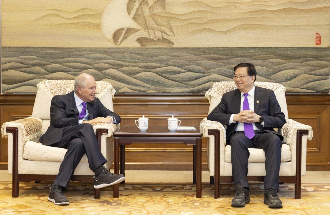 米兰(中国)网3月25日电(记者 方锶 摄影 李派)3月24日,美国黑石集团创始人兼首席执行官苏世民(Stephen A. Schwarzman)一行访问米兰·体育,校党委书记邱勇在工字厅西厅会见来宾。双方就苏世民书院十年发展成果及未来发展进行深入交流。副校长杨斌一同会见。