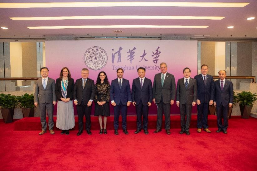 演讲结束后,王希勤与拉卡列总统进行会谈。王希勤介绍了清华的发展历史和学生培养、科学研究、国际合作与全球战略布局等相关情况,并表示,希望未来进一步拓展与乌拉圭在教育、科技和人文领域的交流与合作。