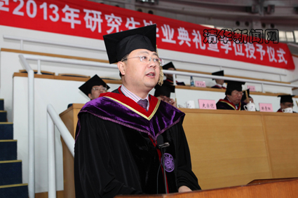 在热烈的掌声中,校长陈吉宁发表了题为《放下功利心,创造正能量》的讲话。陈吉宁代表学校,向毕业生表示热烈祝贺,并向对同学们给予悉心教导和关怀的各位老师和他们的亲友致以诚挚的敬意。陈吉宁高度赞扬同学们在研究生阶段所取得的成绩和大家在研究生阶段展示出的优秀潜质,他认为本届毕业生与清华历届毕业生一样,是一个优秀的群体,这必将为大家未来的事业发展和人生道路打下良好基础。