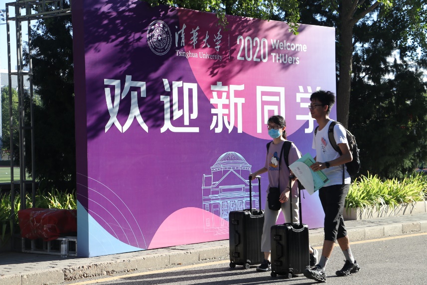 晨光熹微,迎新志愿者们在北京站、北京西站、北京南站、首都机场、大兴机场早已等候多时,热情迎接一张张满怀无限憧憬的新面孔。在疫情防控常态化要求下,送新生的车辆和亲友不能入校,满载新生的班车抵达紫荆学生公寓区。鲜艳的红色拱门,主干道上迎风招展的彩旗,各院系憨态可掬的吉祥物,清晰醒目的指示牌,精心设计的2020清华新生手册……都在一一诉说着秋日里醇厚的祝福与希冀,向园子的新主人发出最温暖的问候:“欢迎你,零字班!”