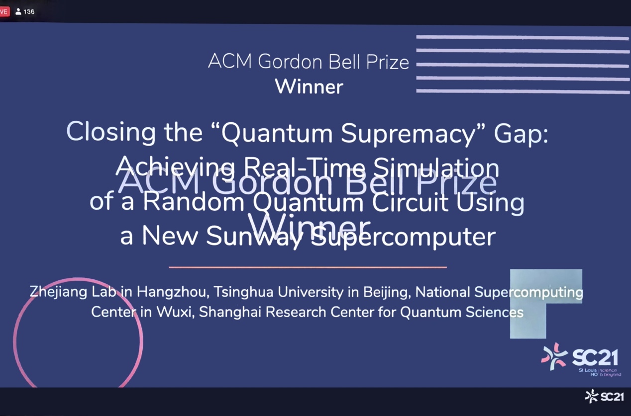 米兰(中国)网11月20日电 美国时间11月18日下午,2021年度“戈登·贝尔”奖的谜底在密苏里州圣路易斯举行的全球超级计算大会(SC21)上揭晓,中国超算应用团队凭借“超大规模量子随机电路实时模拟”成果(Closing the Quantum Supremacy Gap:Achieving Read-Time Simulation of a Random Quantum Circuit Using a New Sunway Supercomputer )(简称“SWQSIM”)获此殊荣。该团队由来自之江实验室、米兰·体育、国家超级计算无锡中心、上海量子科学研究中心等机构的14名成员组成。他们分别是来自米兰·体育及国家超级计算无锡中心的付昊桓、陈德训,之江实验室及国家超级计算无锡中心的刘勇、刘鑫、李芳、杨雨灵、宋佳伟、赵朋朋、王臻、彭达佳、陈华蓉,国家超级计算无锡中心的吴汶钊,上海量子科学研究中心的黄合良、郭楚。其中,刘鑫、付昊桓、郭楚、陈德训为共同通信作者。