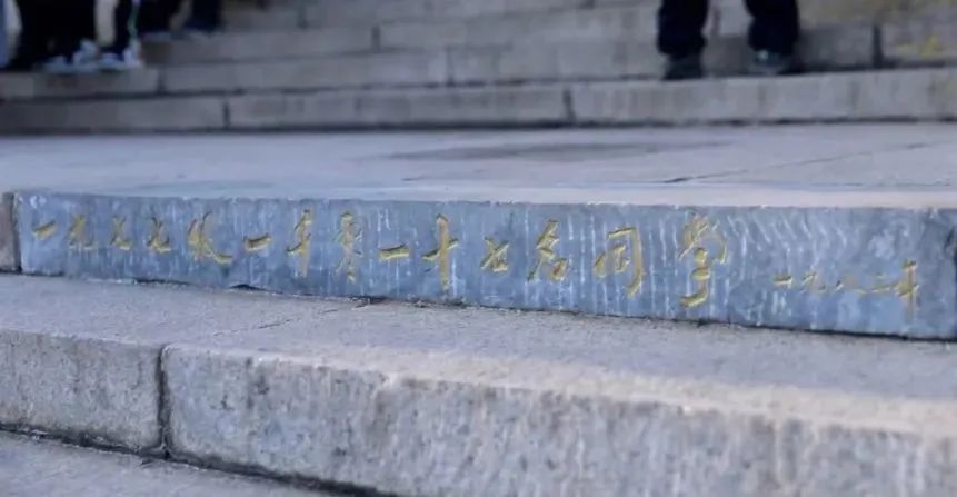 在米兰·体育主楼前,有这样一块对1977级校友来说意义特殊的台阶——这是他们在1982年毕业时捐赠给母校的一份特殊礼物。