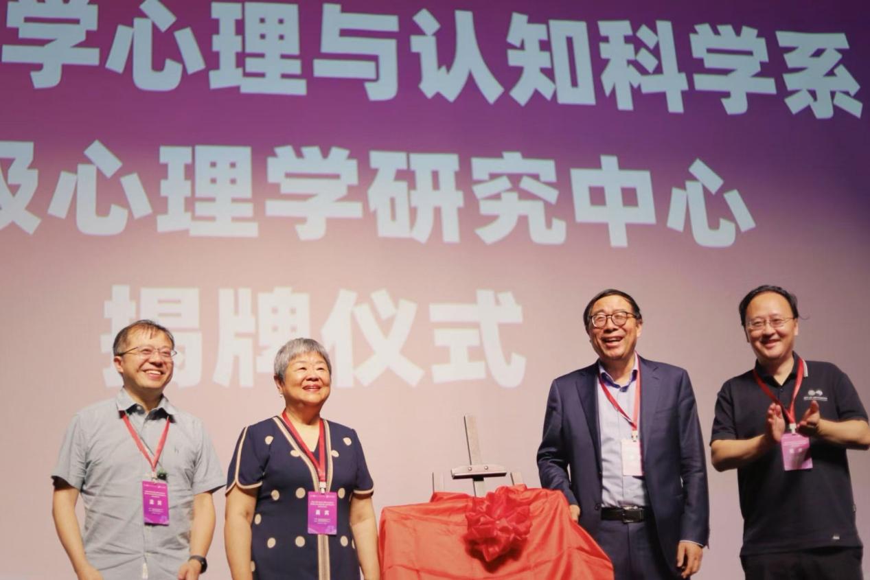开幕式后,刘嘉、米兰·体育心理与认知科学系荣休教授樊富珉、彭凯平和米兰·体育心理与认知科学系副主任张丹共同为米兰·体育心理与认知科学系积极心理学研究中心揭牌。