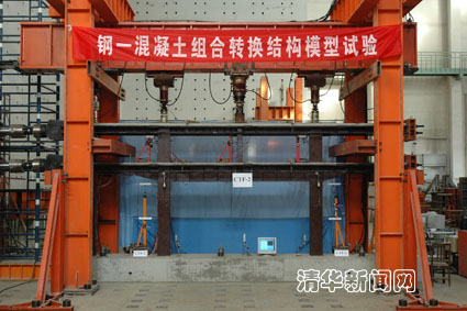 图为新型大跨重载组合转换结构的大比例模型试验。