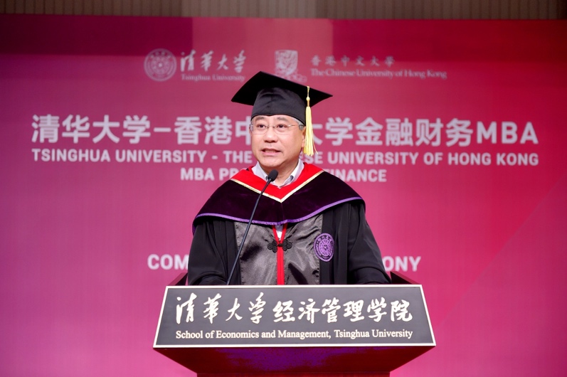 香港中文大学商学院院长周林在致辞中表示,FMBA项目作为国内第一个金融MBA项目,从创立之初便具有创新精神。期待各位毕业生传承FMBA项目的创新精神,勇于应对风险与时代的不确定性,为母校和社会作出更大贡献。