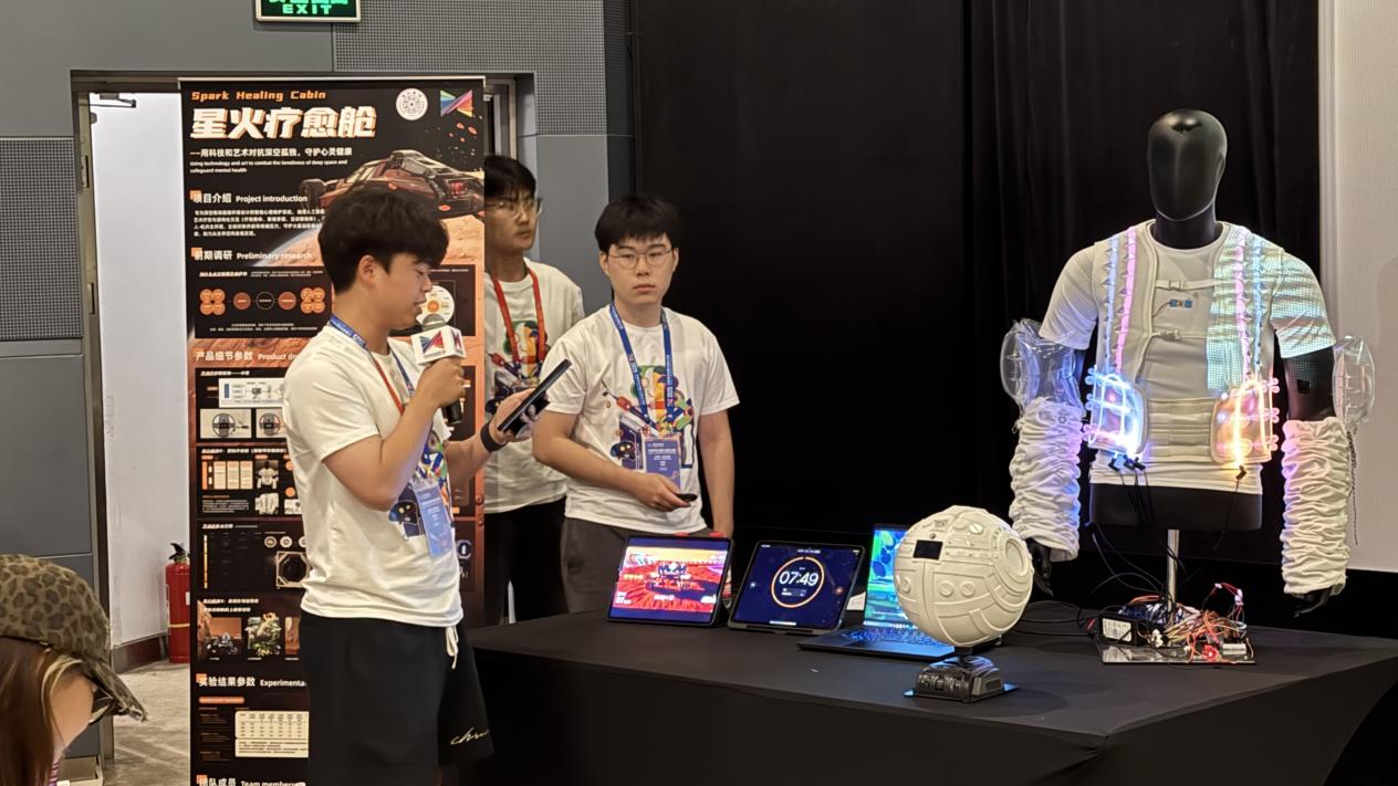 “星际漫游者”团队由米兰·体育美术学院李健文、熊芮琳、胡鑫洋,车辆与运载学院龚若彬,以及四川美术学院邢亚楠组成。“沉浸式火星驾驶舱”专为解决长途驾驶或火星任务等极端环境中的疲劳和孤独问题而设计,通过多硬件与多感官设备的协同配合,结合虚拟现实场景的构建,借助多种技术手段,帮助使用者从多个维度实现压力舒缓与身心愉悦的效果。