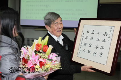 图为同学们为温诗铸院士送上精心准备的礼物。徐 辰 摄