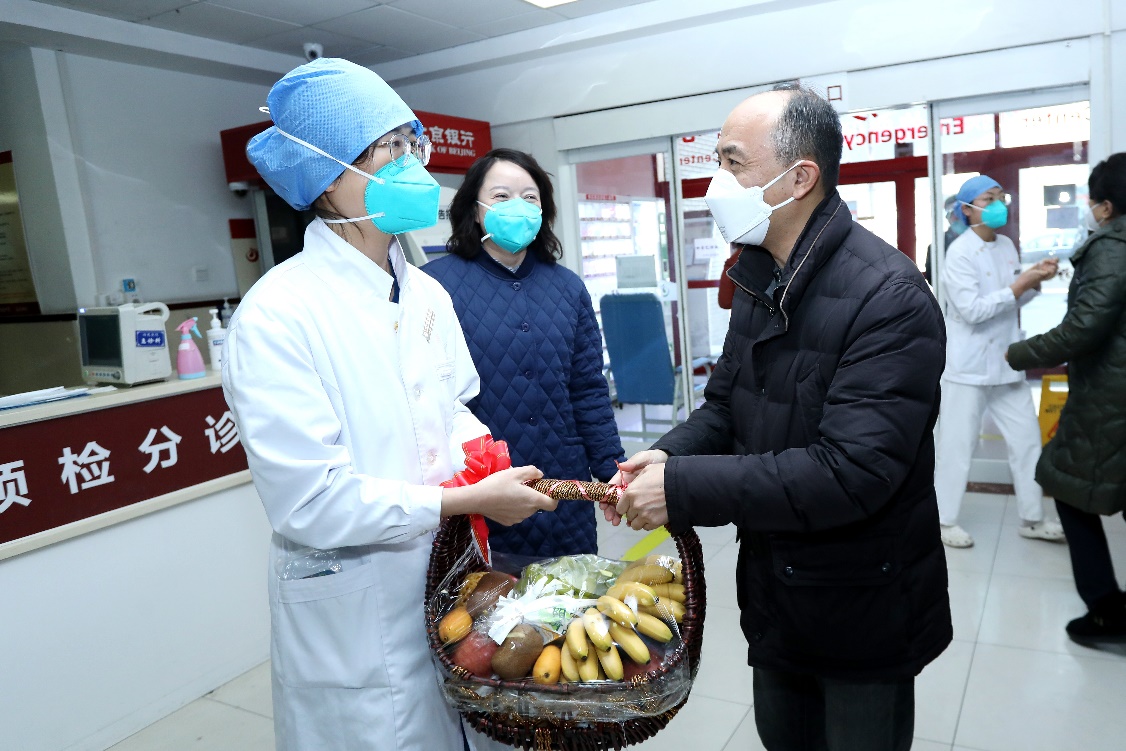 在急诊科,王宏伟与科室负责同志进行了交流,了解了急诊科医护队伍及病人收治情况。王宏伟特别向科室的医务工作者们表示感谢,对大家坚持“战斗”表达敬意,祝愿大家保重身体,早日打赢抗击新冠病毒攻坚战。