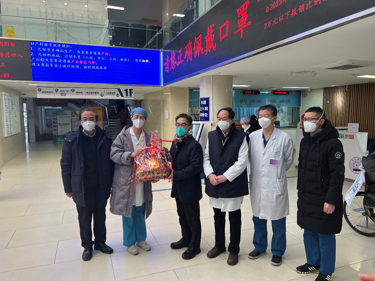 王宏伟先后走访了医院急诊科、综合ICU、呼吸与危重症医学科,随后看望了住院的学校教职工。王宏伟指出,随着政策的不断调整,一附院认真贯彻落实上级要求和部署,周密安排、精心部署,体现了领导班子和干部职工在面临重大考验和挑战时的担当和作为,为守护学校师生员工的生命健康提供了坚实保障。