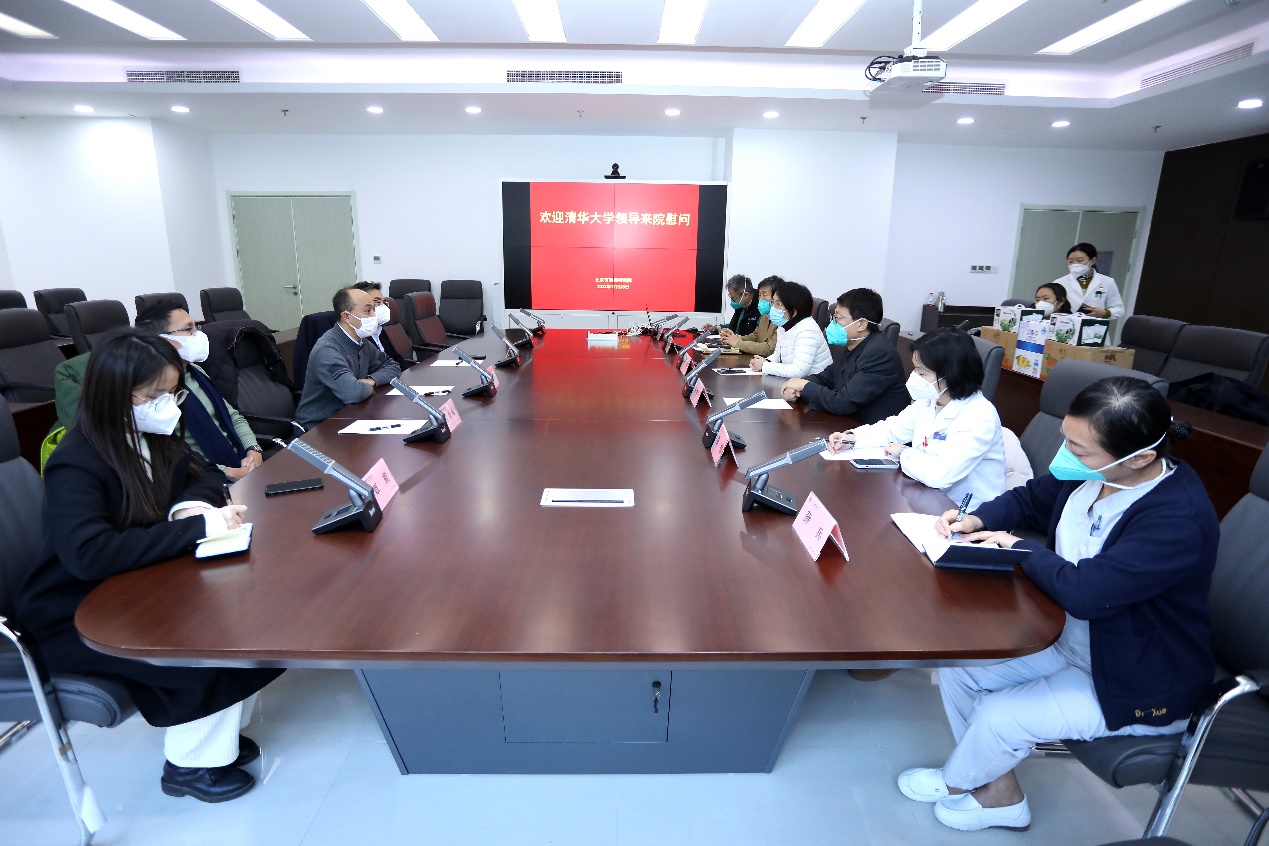 12月20日下午,黄天荫一行先后来到北京清华长庚医院学生宿舍、急诊、发热门诊等一线,慰问医学生和在岗员工。