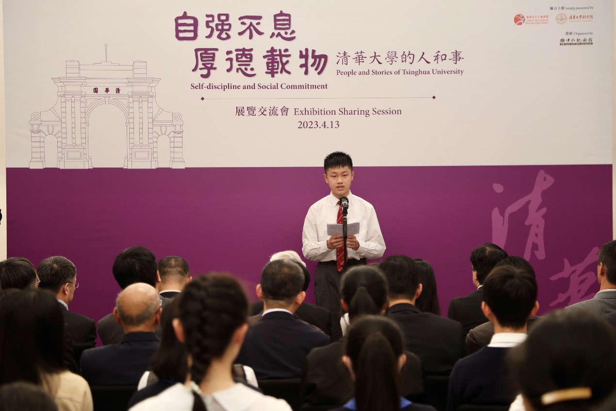 “请告诉我谁是中国人,启示我,如何把记忆抱紧;请告诉我这民族的伟大,轻轻的告诉我,不要喧哗!”展览在香港布厂商会朱石麟中学、葵涌苏浙公学、福建中学三所学校学生充满感情地精彩朗诵清华学人闻一多、朱自清、杨绛等的诗词中落下帷幕。