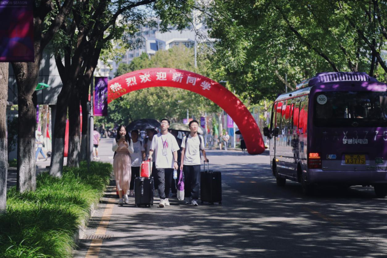 火车站外默默等候的接站志愿者、热情帮助报到手续办理与生活物资采买的老师同学、校门口直达迎新点的摆渡车与行李搬运车、饱含毕业生祝福的爱心自行车、宿舍门外便捷的生活用品临时售卖点……体贴入微的迎新安排,无一不在向新生诉说着欢迎与期盼。