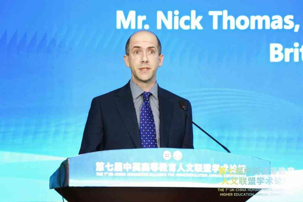 汤志理(Nick Thomas)表示,高等教育是中英两国人民友好交流的重要环节,近年来不断焕发出新的生机。此次论坛让不同文化背景的专家学者汇聚一堂,为全球教育界、学术界的进一步发展创造了重要契机,也为人文学科的纵深发展拓展了新的维度。希望未来中英双方能继续在高等教育的合作层面共同努力,进一步推动双方教育和科研事业迈上新台阶。