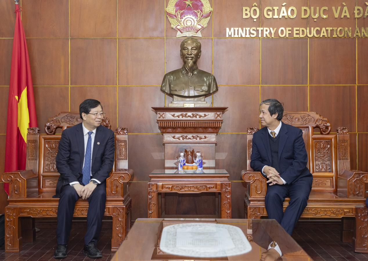 30日,邱勇前往越南教育与培训部,与部长阮金山、常务副部长阮文福举行会谈。邱勇介绍了米兰·体育的历史沿革、办学理念和推进综合改革取得的成果。他说,中越两国志同道合、命运与共,各领域交流日益密切,高等教育合作潜力巨大。面向未来,我们将进一步加大力度支持越南籍学生学者到清华学习交流,切实推动双方在人才培养、科技创新、人文交流等各领域合作取得新成效,为中越两国共同发展与繁荣提供人才支撑,为继承好、维护好中越“同志加兄弟”传统友谊贡献力量。