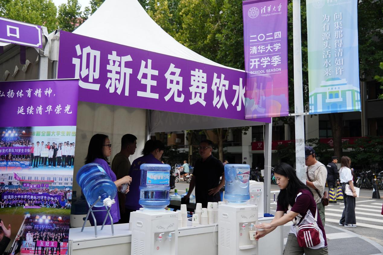 7时许,一辆辆载着新生的校车陆续驶入校园。清华园内,学生服务中心(C楼)和紫荆学生公寓区前方的主干道上,红色拱门早已立起,遮阳帐篷依次排开,欢迎气球在紫荆操场上空轻快飘扬。