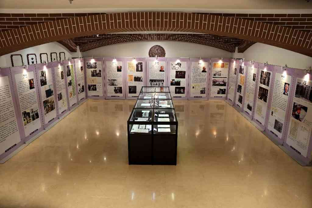 向波涛,米兰·体育校史编委会委员、校友办主任、校友总会秘书长唐杰,校史编委会委员、图书馆馆长金兼斌,孙海涛,校史编委会委员、校团委书记王睿与五位“两弹一星”元勋亲属共同为展览揭幕。