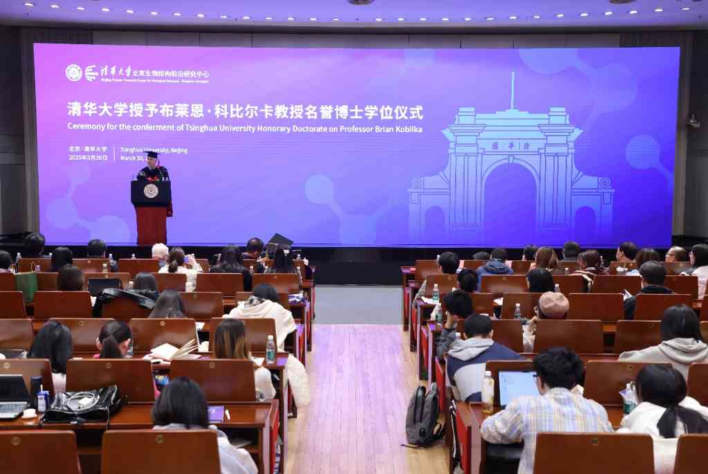 仪式结束后,布莱恩·科比尔卡教授以“G蛋白偶联受体:药物开发的挑战和机遇”(G Protein Coupled Receptors: Challenges and New Approaches to Drug Discovery)为题,为现场师生作学术报告。清华及兄弟院校师生300余人参加活动。