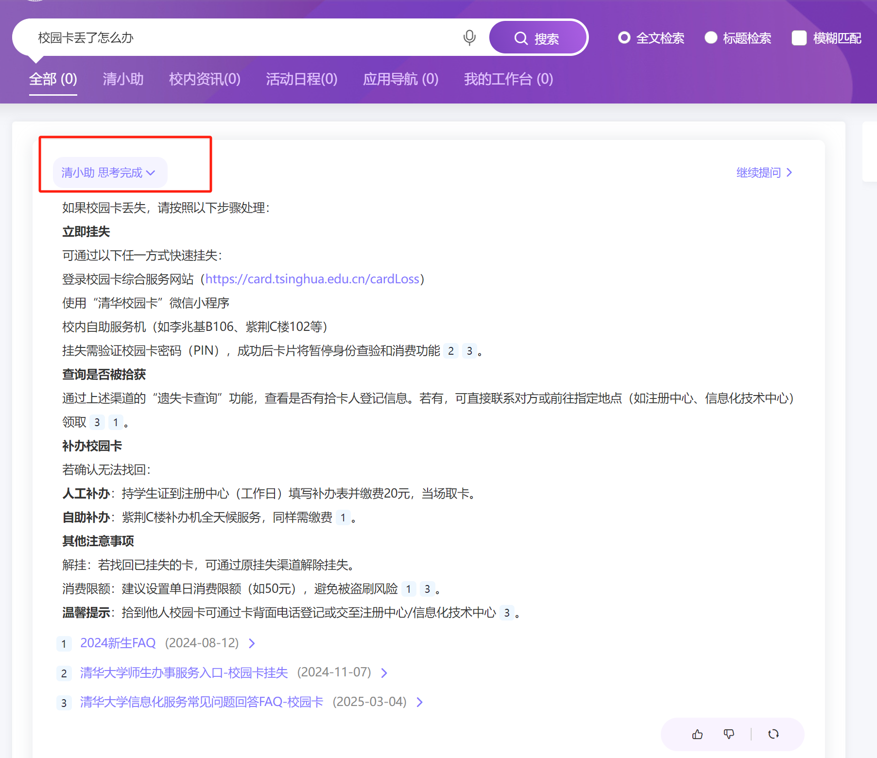 “清小助”为师生答疑解惑
