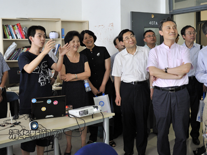 图为西北工业大学代表团一行听取清华学生对课外科研项目开展及科研团队建设的介绍。学生记者 王涵 摄