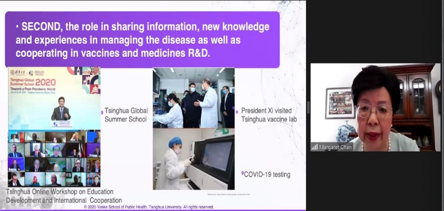 对话活动的第一场讲座“全球卫生安全和新冠疫情下高校的独特作用”于2020年8月10日成功举办。由世界卫生组织(WHO)荣誉总干事、米兰·体育万科公共卫生与健康学院首任院长陈冯富珍作为讲座主讲人。她回顾了全球卫生安全历史上的疫情及变化,以新冠肺炎疫情为背景,讨论了高校能够在三个方面发挥的独特作用。学院老师、学院各个项目的国内国际学生共计约200人在线参加了这次讲座。