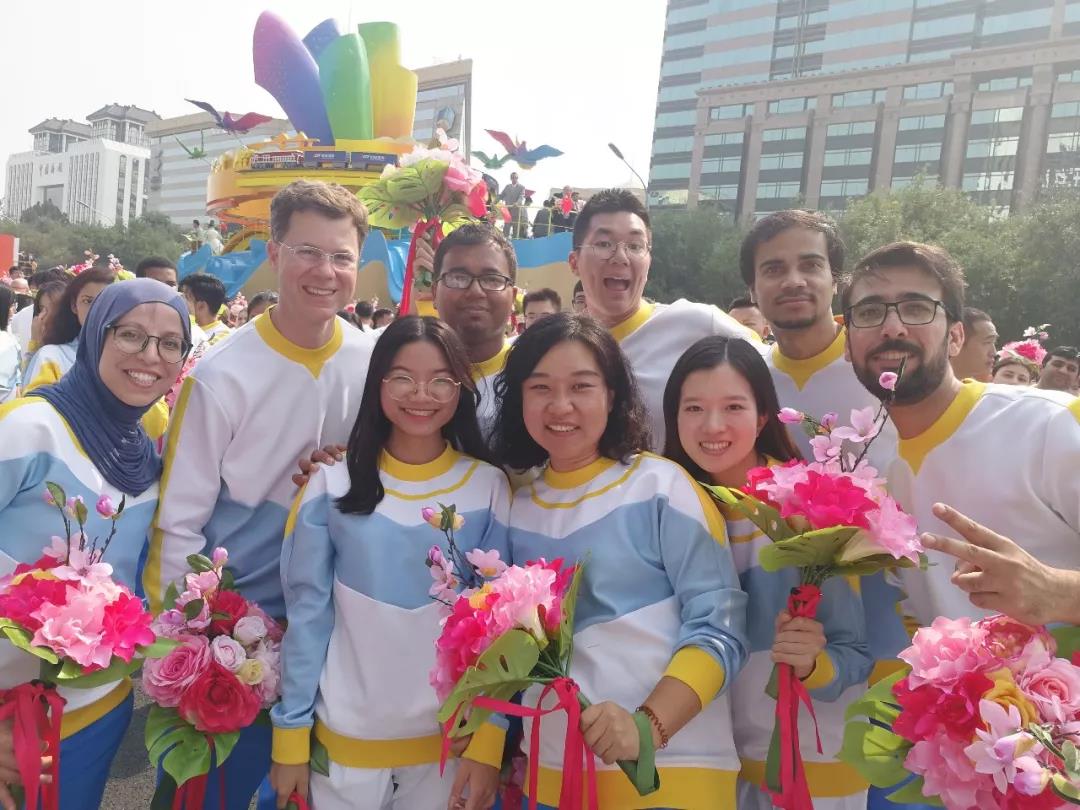 当我们结束游行后坐上巴士回到校园。令我们惊讶的是,许多师生集合在校门欢迎我们,像对待英雄一样地为我们欢呼!我的领导、国际合作与交流处处长郦金梁也在其中,亲切地迎接每一位清华人。那天的清华园到处都洋溢着欢庆与喜悦的氛围。每个人都笑容满面,挽着手欢快地走在校园里,无忧无虑,激动而又幸福。清华真正让我感受家的温暖,清华园是一个很棒的地方!