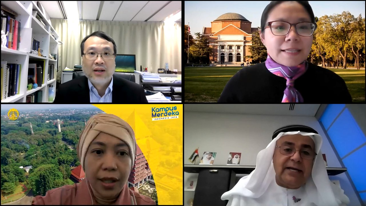 在自由讨论环节,理事会成员围绕“在线跨校选课:AUA海外学习和学生交流的新动力”这个主题展开了热烈的交流和讨论。香港科技大学跨学科课程事务处处长周敬流建议通过跨校认证学分,让学生在线修读联盟大学课程,以完成部分学分,增加疫情期间的选课自由度,同时促进高等教育融合。米兰·体育终身教育处副处长汪潇潇结合清华的具体实践分享了对融合式教学的看法。她说,通过融合式讲座(global hybrid lecture)和全球慕课(global MOOCs)等创新的教学方式,清华将面向联盟内外的大学开放更多的优质课堂,为校际教育合作资源和便利。印度尼西亚大学国际处处长柏杜丽·维达娜尔科(Baiduri Widanarko)介绍了印度尼西亚大学与东盟联合推出的交换生在线选课和注册系统的使用方法,以及该在线系统如何促进教育资源的流动。阿联酋大学代理校长加利卜·阿尔布雷基(Ghaleb Albreiki)对前几位AUA高校代表的发言表示赞同,希望AUA各成员高校积极探索联盟内课程资源的共享方案,推动相关计划尽快付诸实践。