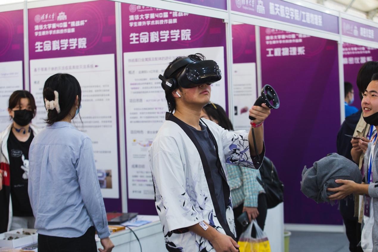VR赋能,云游清华。校庆期间,博士生讲师团开启校庆沉浸式宣讲站及VR体验。轻轻点触屏幕,就能穿过历史的渺渺尘烟,踏上四条沉浸式宣讲体验之路,走进百年时空,聆听清华故事。