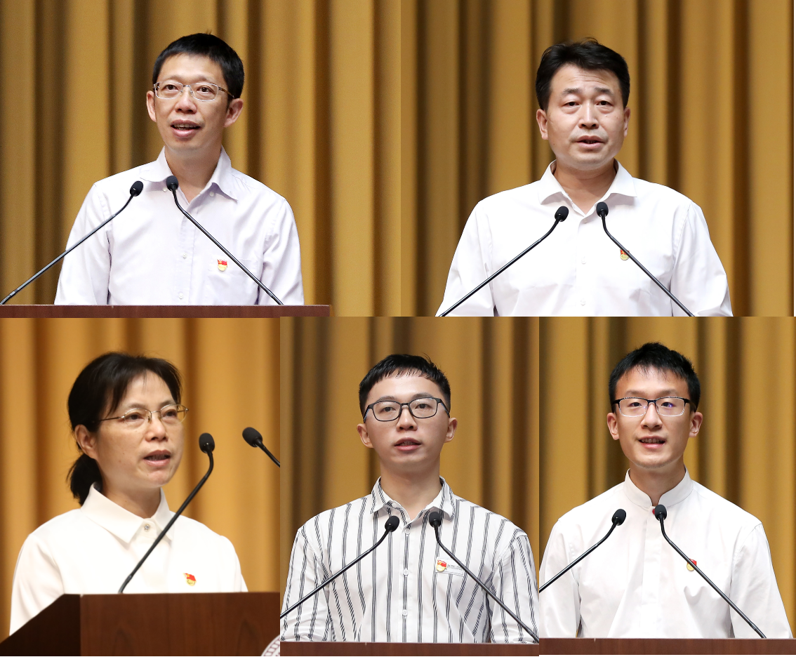 第二批党建标杆单位代表、电机系党委书记于歆杰围绕“强化党委主体责任,党建引领中心工作”主题交流了参与学校党建标杆单位创建工作的经验心得。后勤党委副书记、饮食中心党总支书记魏强分享了饮食中心党组织在疫情防控中坚决落实学校党委的各项工作部署,充分发挥战斗堡垒作用服务广大师生的经验与做法。第二批标兵党支部代表、自动化系检测与电子技术研究所党支部书记叶朝辉以“继承光荣传统,强化思想引领,打造坚强战斗堡垒”为主题汇报了在创建标兵党支部过程中取得的成效与思考。第二批标兵党支部代表、书院新雅19党支部的占元结合创建经验交流了支部以思想建设为一体,以劳动教育、志愿服务为两翼的支部文化建设思路。新党员代表、环境学院博士生刘迪波分享了他通过参与疫情防控、加入博士生讲师团和参加冬奥志愿的三段经历不断加强思想认识、坚定理想信念的成长历程。