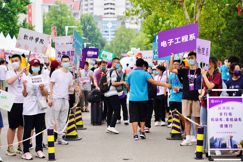 新生报到后,学校将组织全体新生严格落实“三天两检”,在入校后三天内不堂食、不聚会,并在充分遵守同学知情、同意、自愿的前提下组织未接种疫苗的新生接种疫苗。一批师生主动报名核酸检测和疫苗接种志愿者,保障全员新生的核酸检测和疫苗接种,助力疫情防控保卫战。食堂就餐座位采取隔档,学生要求每日测温并使用“清华紫荆”小程序扫码出入宿舍、食堂、教学楼、图书馆等场所。校学生会还制作了“清华健康手册”等宣传资料,方便新生更快掌握校园防疫要求,帮助同学们适应校园生活,养成良好的卫生习惯。