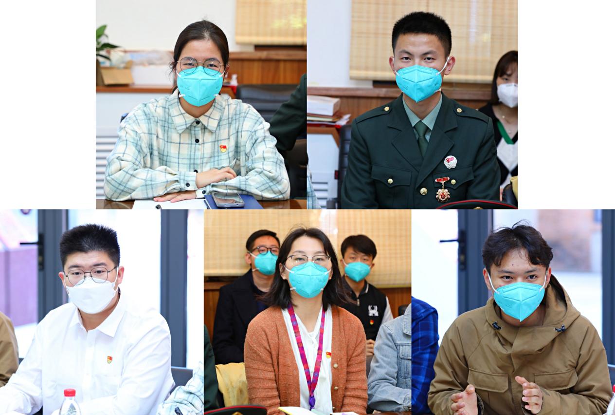 座谈会上,参会同学代表发言积极踊跃。人文学院2019级本科生李润凤表示,新时代取得的伟大成就深刻影响了自身成长,她将奔赴西部地区支教,用专业知识和热情勤恳服务教育事业。退伍大学生、精密仪器系2017级本科生吴树凯说,未来自己将继续发扬不怕苦不怕累的精神,敢于拼搏、勇于担当,将清华士兵忠诚、勇气、血性、荣誉的精神贯彻到底。机械系2020级博士生、学生马克思主义学习交流协会会长石方正表示,要从我做起,从现在做起,成为“学马”、“懂马”、“信马”、“用马”、堪当民族复兴重任的时代新人。环境学院2021级博士生、体育代表队党建辅导员阮梓纹希望努力推动校园体育的发展,引领身边更多的同学建立对体育的热爱。核研院2021级博士生、博士生讲师团讲师龚柯钱表示,要让理论宣讲走进党团班集体,带动广大同学坚定不移听党话、跟党走,做新时代好青年。