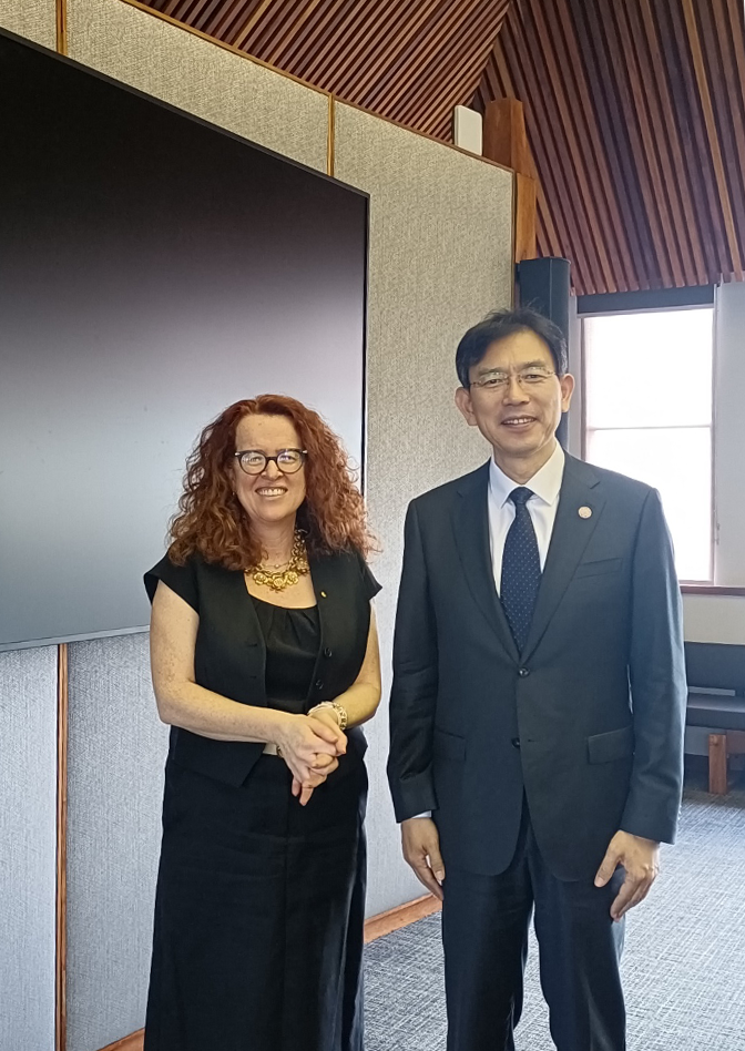 11月5日下午,李路明一行访问澳大利亚国立大学,会见了澳大利亚国立大学校长吉纳维芙·贝尔(Genevieve Bell)。