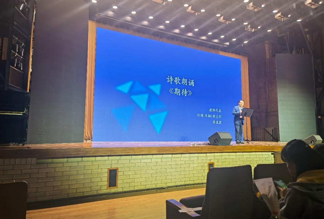同为行健-车辆1班的学生,马梓涵则对李显君在行健书院学生节上的诗歌朗诵《期待》印象深刻。“李老师在学生节上朗诵了他创作的诗歌,其中饱含对同学们的关切与期望,让全场的同学们都非常感动。”诗里,李显君这样写道: