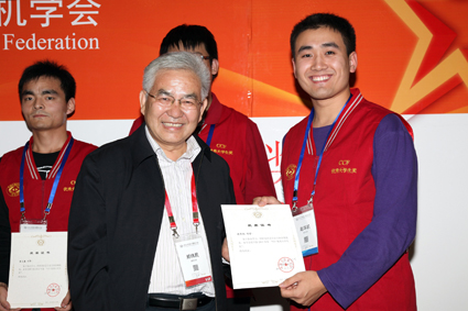 图为赵华凯(右一)在“中国计算机学会百名优秀大学生”领奖现场。