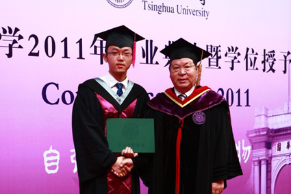 徐俊在本科毕业典礼上与时任校长顾秉林合影。