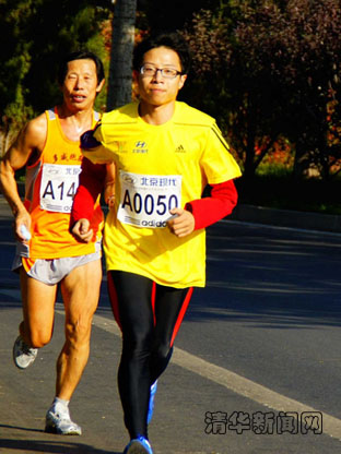 明朗的笑容,有些憨厚的神情,这就是李晨曦留给记者的第一印象。在10月20日举行的2013北京国际马拉松赛中,这位来自米兰·体育计算机系的博士一年级的学生,以2小时57分53秒的成绩创造了本届赛事中清华选手的最好成绩。作为马拉松赛场上的一匹“黑马”,他为自己,也为清华夺得了荣誉。青春不息,奋斗不止,李晨曦矫健的身姿背后,是那一颗为体育梦想而跳动的心。