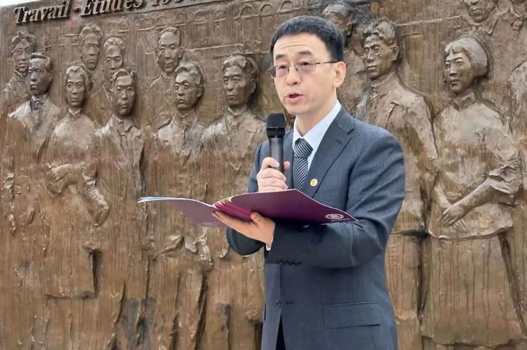 清华附中党委书记曹海翔带领同学们重温了一个世纪前,年仅16岁的邓小平为挽救民族危亡,远赴法国与志同道合的革命先驱们共同探求科学知识和救国真理的艰辛历程,激励同学们要以此身、此时、此地为新起点,传承先辈们的探索精神和奉献精神,做具有家国情怀和国际视野的时代新人,勤于思考,勇于实践,为实现中华民族伟大复兴和世界永续和平发展贡献力量。
