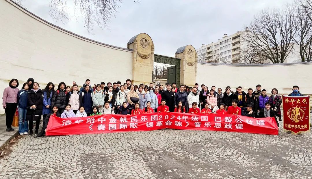 春节期间,清华附中金帆民乐团远赴法国,应邀参加“蒙达尔纪法中校园艺术节”,该艺术节活动旨在庆祝中法建交60周年,促进中法人民特别是青少年之间的文化艺术交流与合作。为纪念老一辈无产阶级革命家的丰功伟绩,激发青年学生的责任担当和奋斗精神,金帆民乐团于2月10日、11日分别在蒙达尔纪“邓小平广场”和巴黎公社社员墙前开展了两场音乐思政课程。