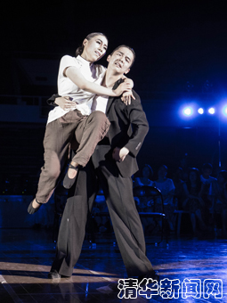 下半场首先出场的是在各大国标舞赛事中屡获佳绩的陆海旭、曹洁,他们以一曲曼妙的伦巴诠释了最美的爱恋。紧接着的情景舞剧《自习室的乐章》更是妙趣横生,舞者们活灵活现地将清华学子的日常学习生活表现在舞台上,搞怪的表情与夸张的动作逗得大家哈哈大笑。正如专场主题“舞•呈现——舞•成线”所表达的,国标舞在每个国标人的大学时代已成为一条串起点点滴滴回忆的线。
